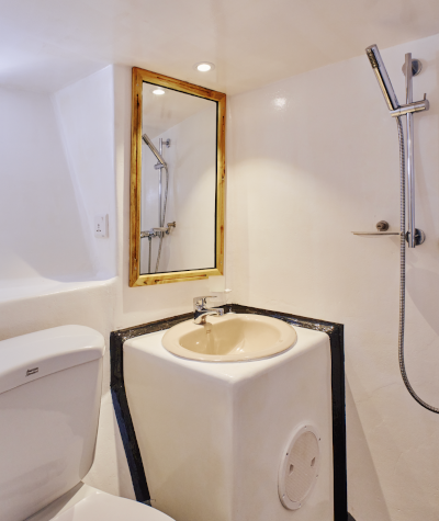 Sie bietet dir ein sicheres, entspanntes Zuhause auf dem Wasser – mit allem, was du für erholsame Tage zwischen den Sessions brauchst.