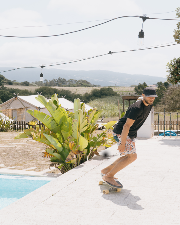 Neben den täglichen Sessions bietet Dreamsea Yoga, Beachvolleyball- und PingPong‑Tuniere, Filmabende im Open-Air-Kino, Marktbesuche in Sintra oder Lissabon sowie geführte Ausflüge zu azurblaue Buchten und malerische Dörfer. Immer mit dabei: Inspiration, Austausch & gute Vibes.