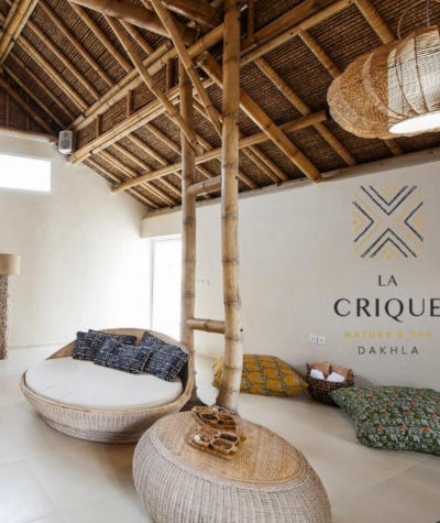 Mit Blick auf die türkisblaue Lagune beherbergt La Crique 15 stilvolle Junior-Suiten und 2 luxuriöse Royal Suites – alle mit eigener Terrasse, privatem Garten und direktem Meerblick. Die Architektur besticht durch nachhaltige Materialien wie Bambusdach, Sandbag-Wände und recyceltes Wasserdesign – eine Oase der Ruhe an der Dakhla-Halbinsel.