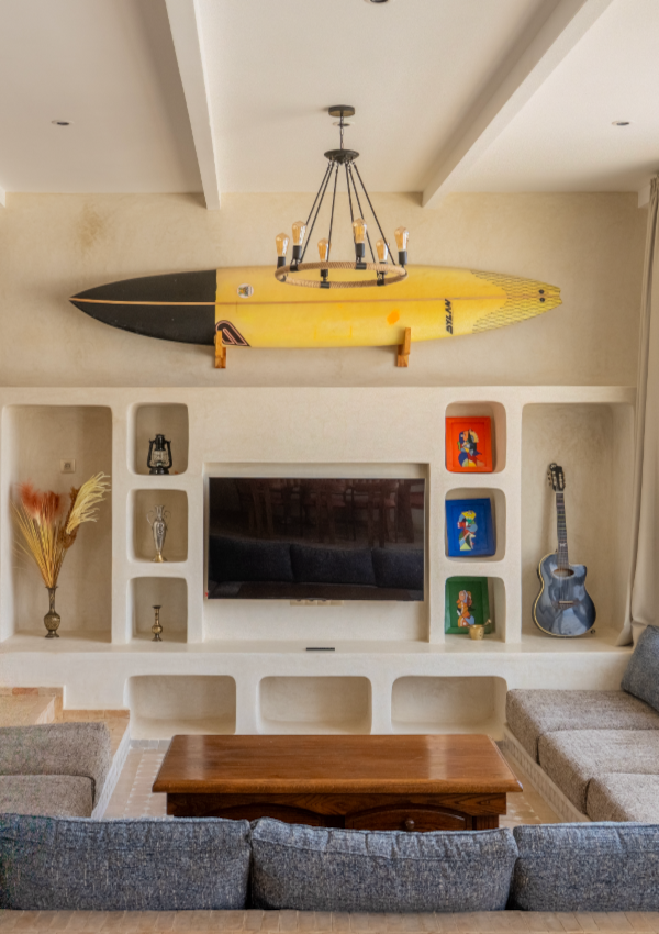 Versteckt in den Hügeln hinter Aourir – besser bekannt als „Banana Village“ – und ganz nah an vielen genialen Surfspots liegt unsere moderne, gemütliche Villa. In ein paar Minuten sind wir im Ort mit kleinen Restaurants und Shops, und auch das lebendige Taghazout ist nur etwa 10 Minuten entfernt. Nach einem langen Tag im Wasser entspannen wir am Pool, essen gemeinsam an der großen Tafel und machen es uns in gemütlichen Mehrbett-, Twin-, Doppel- oder Dreibettzimmern bequem.