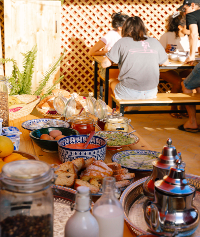 Dreimal täglich wirst du mit leckeren, hausgemachten Mahlzeiten versorgt: Von frischem Obst und Porridge zum Frühstück über stärkende Lunchpakete am Strand bis hin zu traditionellen marokkanischen Abendessen auf der Terrasse – mit viel Liebe gekocht von Chef Ali. Vegetarische Optionen gibt’s natürlich auch.