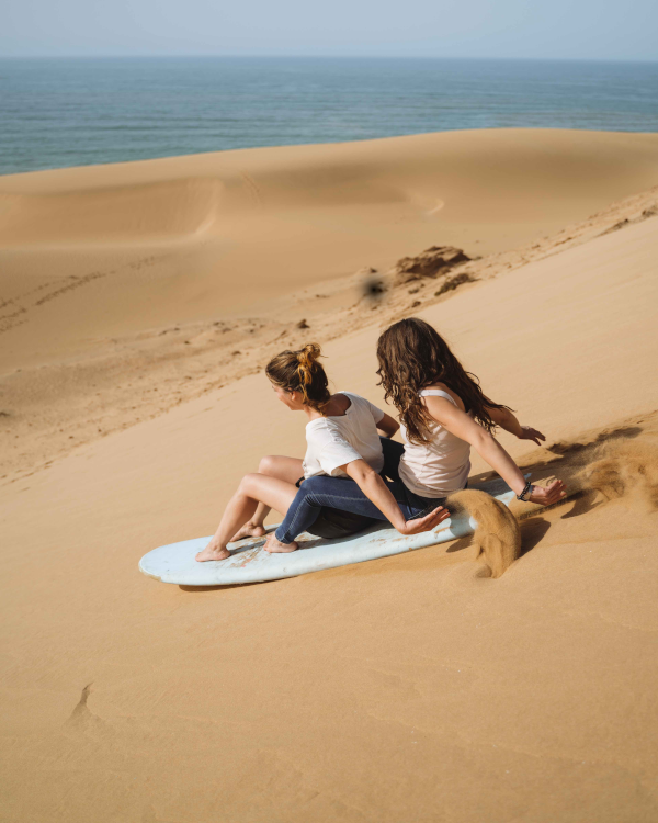 Erkunde die Umgebung von Tamraght bei Ausflügen in die Wüste, zu lokalen Märkten oder an einsame Strände. Wer mag, fährt mit dem Sandboard die Dünen hinunter oder genießt den Sonnenuntergang über dem Atlantik.