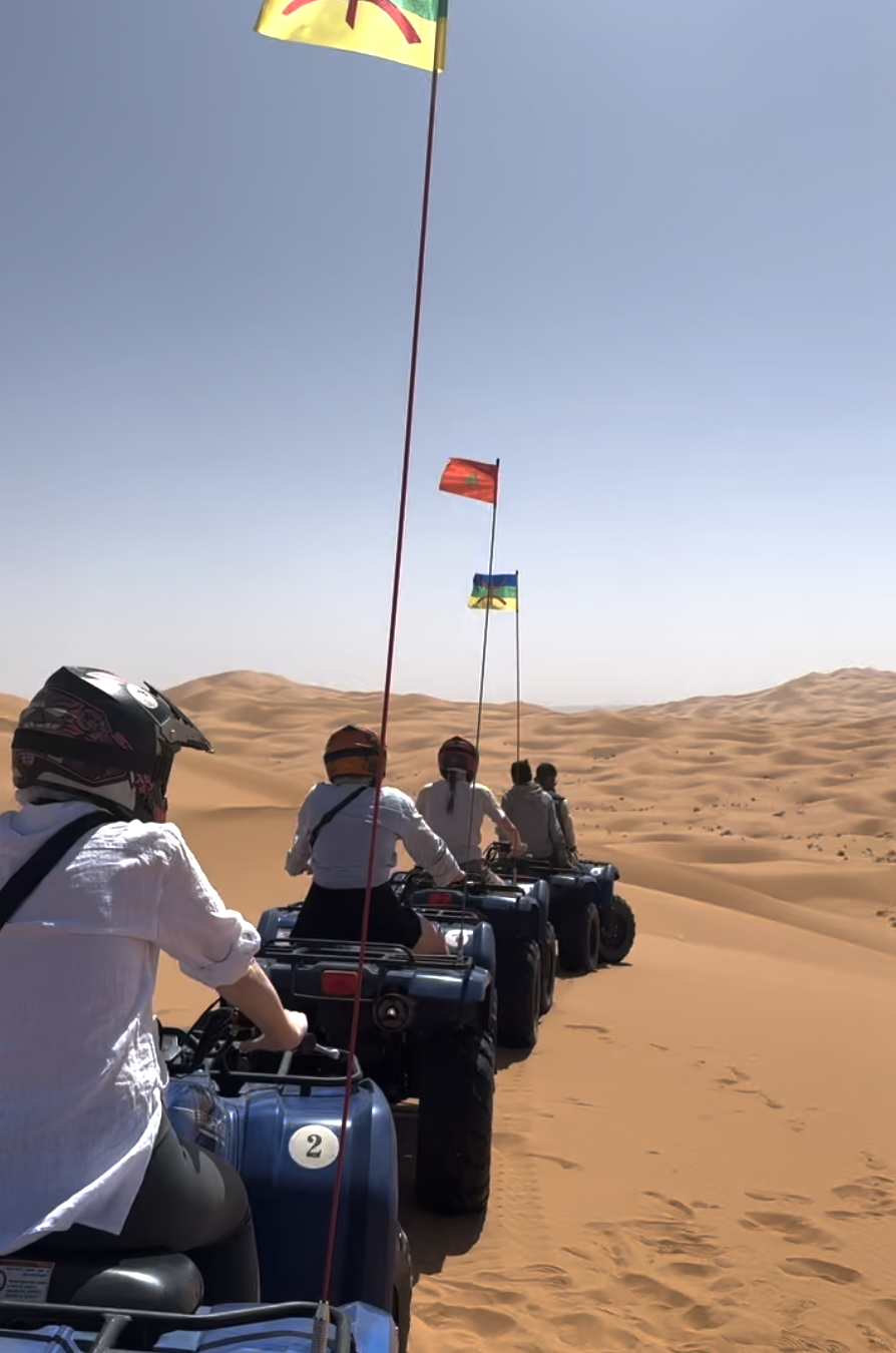 Während unserer 3-tägigen Wüstentour erwarten dich beeindruckende Landschaften, besondere Abenteuer und unvergessliche gemeinsame Momente. Wir entdecken Aït Ben Haddou, verbringen zwei Nächte in Merzouga – davon eine unter dem Sternenhimmel direkt in den Dünen – und genießen die besondere Atmosphäre der Sahara bei einem gemeinsamen Lagerfeuer in der Wüste. Ein weiteres Highlight ist unsere Quad-Tour durch die Dünen, bevor wir im Hotel mit Poolblick entspannen. Die letzte Nacht in Agdz zwischen wunderschönen Palmenlandschaften macht diese Reise zu einem ganz besonderen Erlebnis.