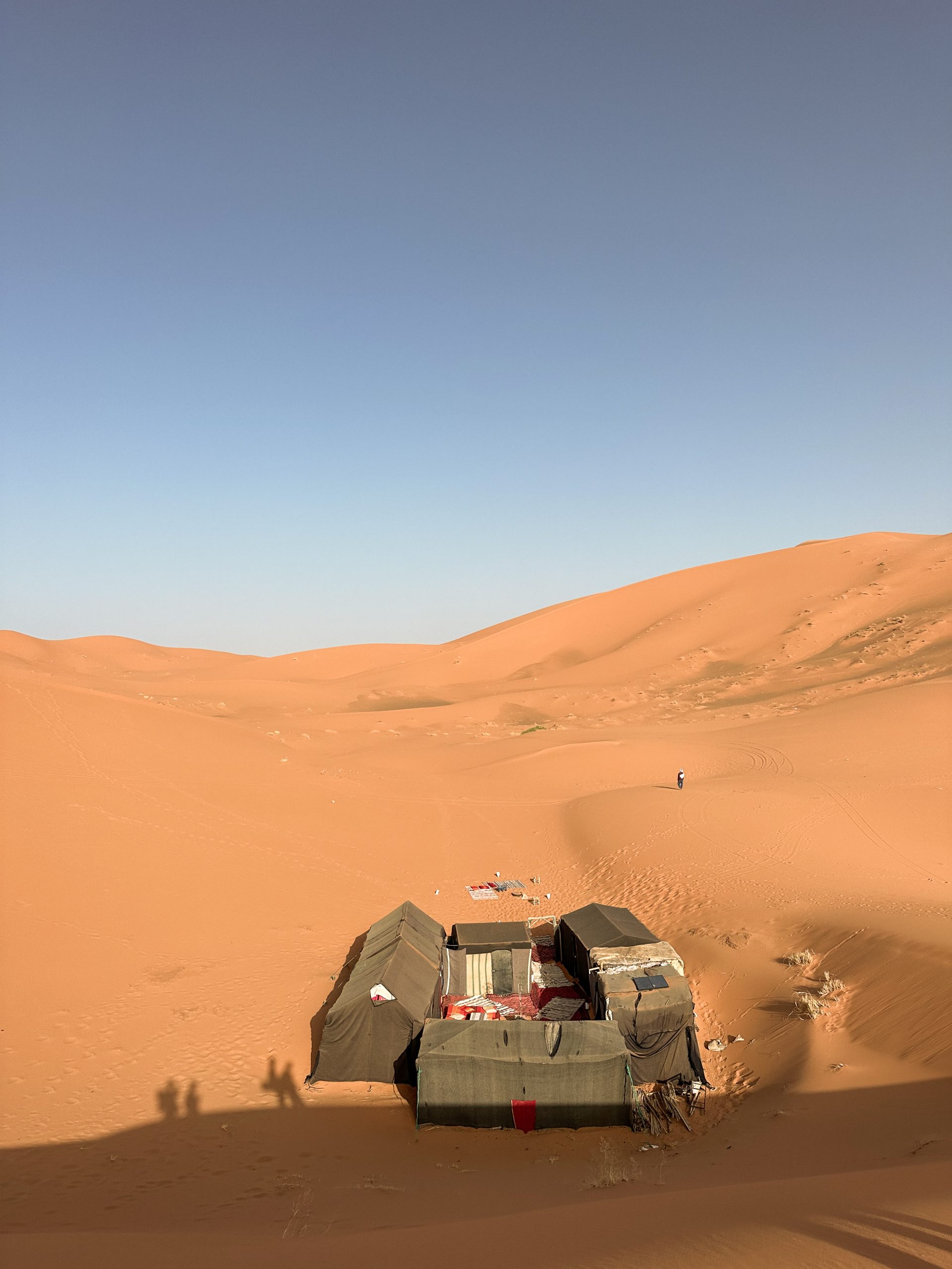 Danach reisen wir weiter nach Merzouga, wo wir zwei Nächte verbringen. Eine Nacht schlafen wir mitten in den Dünen unter dem Sternenhimmel – ein ganz besonderes Erlebnis, bei dem wir die Ruhe der Wüste und die Magie dieses Ortes intensiv erleben können. Die zweite Nacht verbringen wir in einem wunderschönen Hotel mit Pool und traumhaftem Blick auf die Dünen.